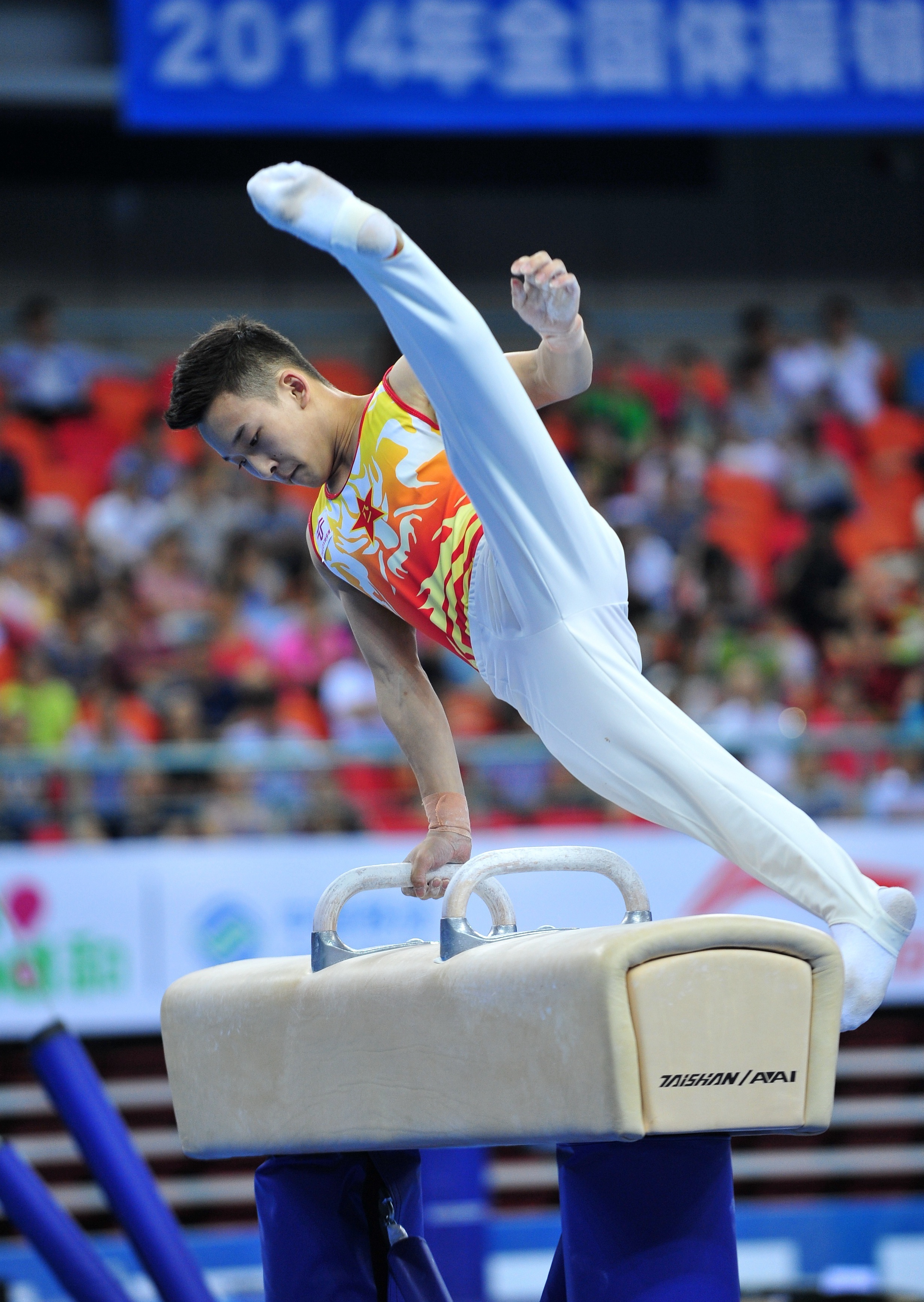 2014年5月12日,肖若腾在全国体操锦标赛暨第四十五届世界体操锦标赛测试赛男子鞍马决赛中。新华社记者 黄孝邦 摄