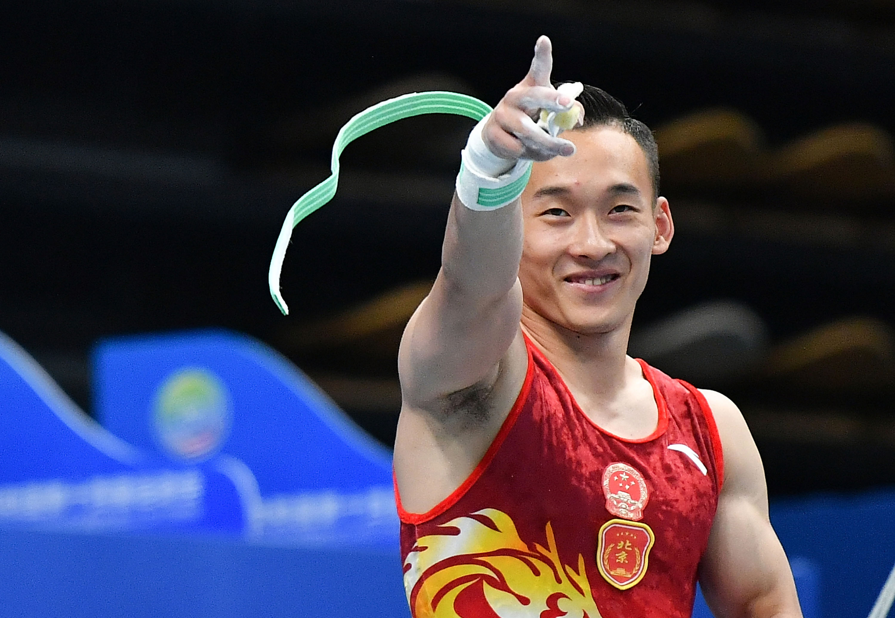 11月14日,北京队选手肖若腾在鞍马比赛中。新华社记者 杜子璇 摄