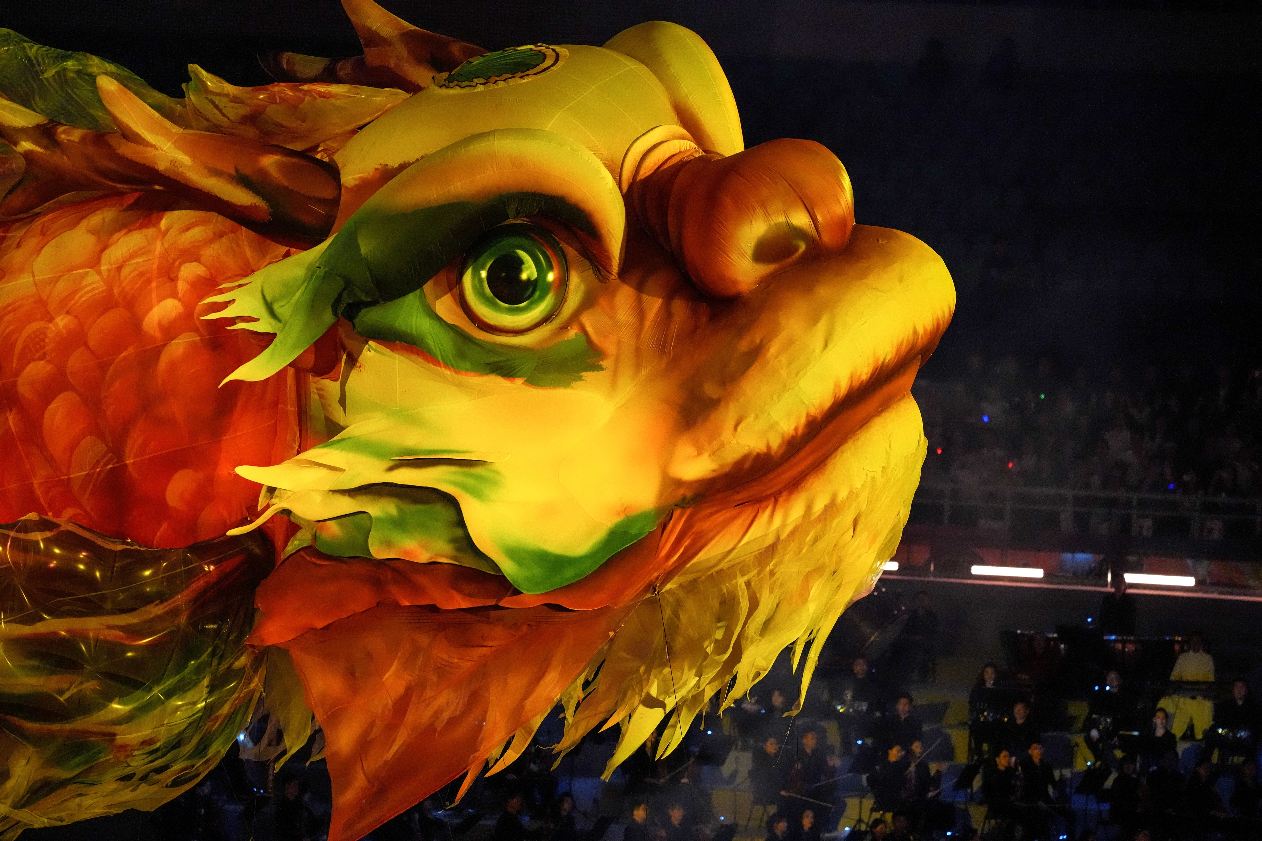 这是11月9日拍摄的第十五届全国运动会开幕式现场表演上的鳌鱼。 新华社记者 赖向东 摄